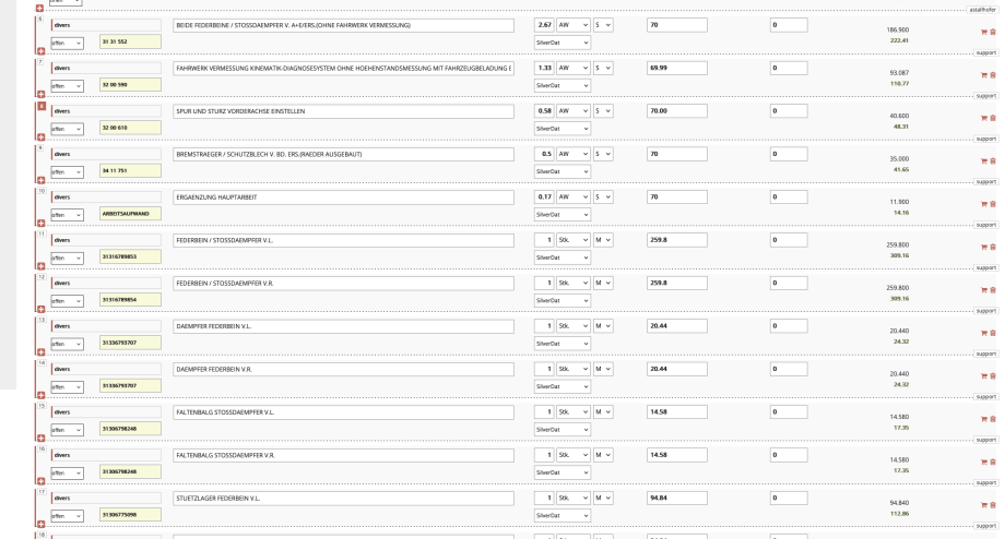 - CATAMA wird die Positionen aus der SilverDAT Kalkulation nachfolgend in Ihren Auftrag integrieren