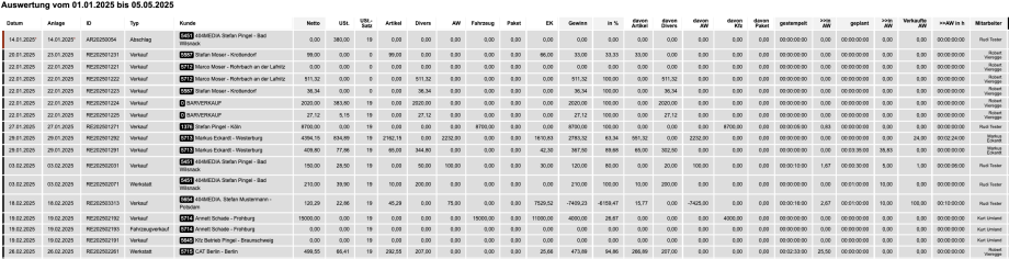 2. Die Umsatzauswertung erzeugt für den gewählten Bereich eine detaillierte Gewinnauswertung auf Auftragsebene.