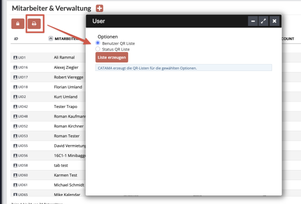 - Liste der QR-Mitarbeiter und QR-Status Codes