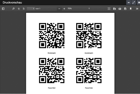 3. Drucken der QR-Code Listen für die Benutzer- und Status-Codes