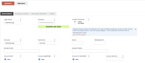 - Einen Benutzer für das Zeiterfassungsterminal, über den die Zeiten erfasst werden können